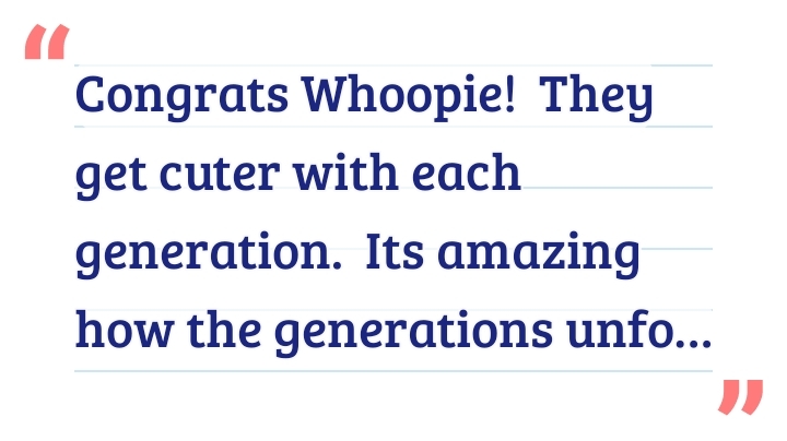 Jela Perez+FollowCongrats Whoopie! They get cuter with each generation. Its amazing how the generations unfold and "We" rise to the top! I wish you all the very best that life, blessings and happiness has to offer. May the Lord bless and protect you and your family! Luv y'all.#TheView00Share