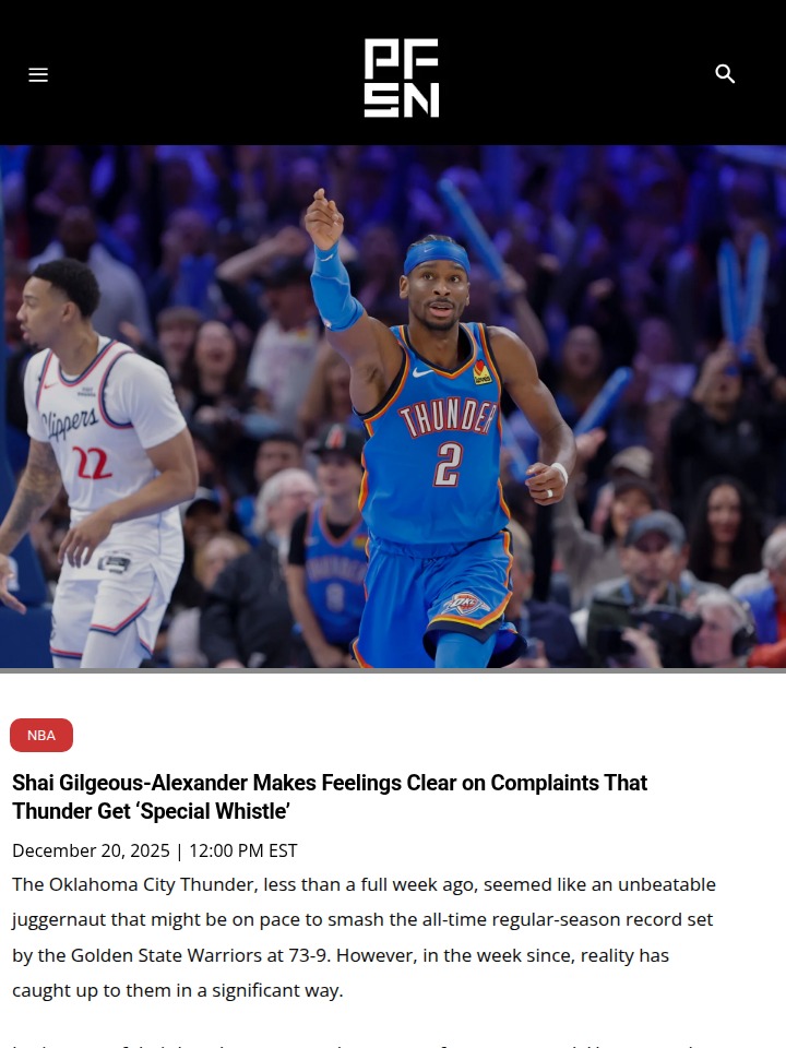 Brian Gaines+FollowShai Gilgeous-Alexander shuts down ‘special whistle’ talkShai Gilgeous-Alexander isn’t having any of the talk about the Thunder getting extra help from the refs. After a tough loss to the Timberwolves—where OKC shot 17 fewer free throws—SGA made it clear he just focuses on playing and winning, not on how the whistle blows. Despite social media chatter, the stats show the Thunder are middle-of-the-pack in free throw attempts. Is the ‘special whistle’ narrative just an excuse, or do you think OKC’s physical style actually gets them more calls? Let’s hear your take on how refs impact the game! #Sports #Basketball #Thunder00Share