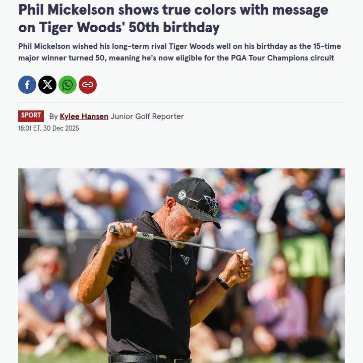 Gabriella Gonzalez+FollowLefty Salutes Tiger at 50: Rivalry RespectNever thought I’d see the day—Lefty putting the rivalry aside to wish Tiger a happy 50th! With King Woods hitting the big 5-0 and still recovering from yet another surgery, the big question is: will he tee it up on the Champions Tour? Phil’s classy message shows just how much Tiger’s changed the game, even for his fiercest rivals. What do you think—does Tiger have one more comeback in him? #Sports #Golf #TigerWoods00Share