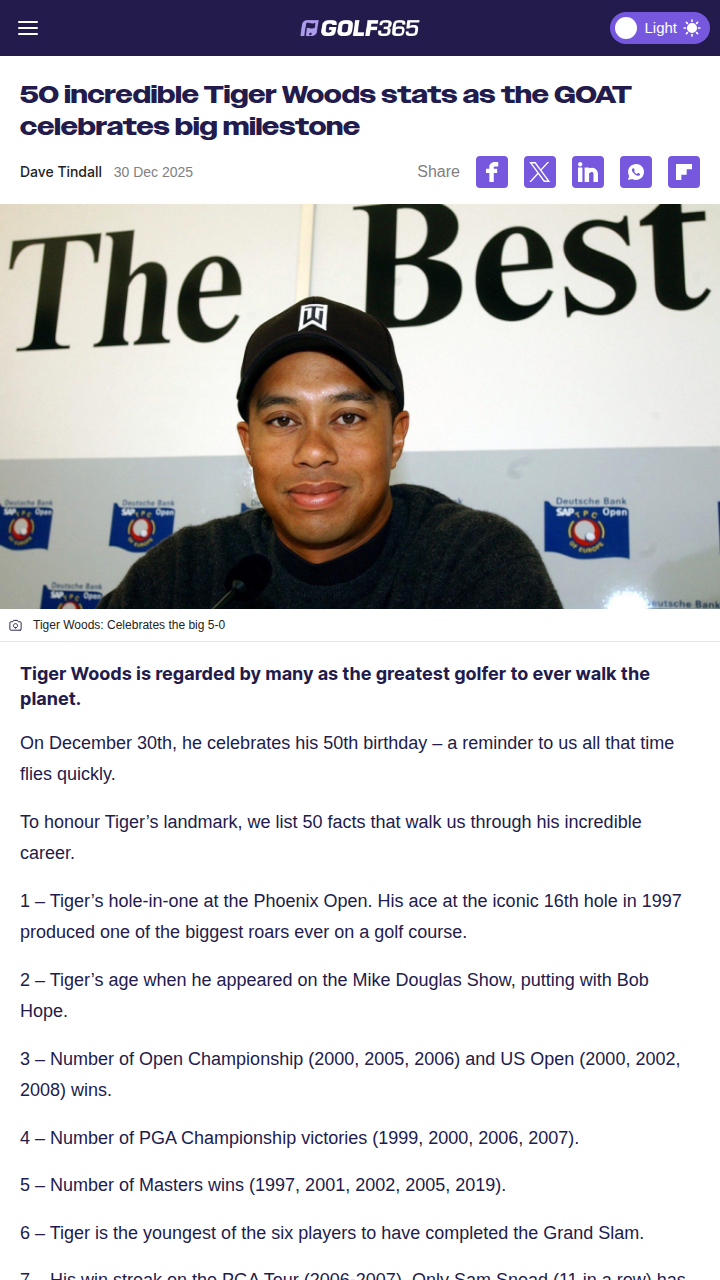 Michael Singh+FollowTiger Turns 50: The Next Chapter BeginsBig Cat fans, can you believe Tiger Woods just hit the big 5-0? From dominating rivals like Phil and Ernie to that legendary chip at Augusta, Tiger’s first two acts were pure fire. Now, as he eyes the senior majors, the question is: can he add to his legacy and school a new generation? His third act is just getting started—let’s see if the GOAT has more magic left in the tank! #Sports #Golf #TigerWoods00Share