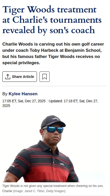Tammy Davenport+FollowTiger Woods just another dad at Benjamin SchoolEven Tiger Woods has to play by the rules when he’s cheering on his son Charlie at Benjamin School golf tournaments. Coach Toby Harbeck treats Tiger just like any other parent—no special privileges, not even for a golf legend. Tiger’s support is always there, but he’s careful not to overstep, even asking what he can do to avoid breaking any rules. Meanwhile, Charlie is quickly making a name for himself, showing off serious talent and drive. It’s wild to see how even the biggest sports icons have to step back and let their kids shine. What do you think—is it harder or easier to be a coach’s kid when your parent is famous? #Sports #Golf #TigerWoods30Share