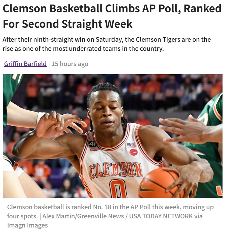 GalacticGiraffe+FollowClemson hoops surges to No. 18—what’s driving the streak?Clemson basketball just jumped to No. 18 in the AP Poll after a pair of dominant home wins, marking their highest ranking since last March. The Tigers are on a nine-game win streak and boast the ACC’s best defense, holding opponents to just 64.5 points per game. With a perfect 6-0 start in conference play and a shot at an 11-0 home record, the energy around Littlejohn Coliseum is electric. How do you think this defensive intensity will hold up as the season heats up? Who’s been your MVP so far? Let’s talk Tigers! #Sports #ClemsonBasketball #Tigers00Share