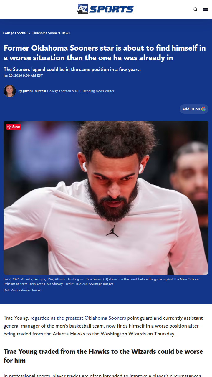 Oscar Gonzalez+FollowTrae Young’s Trade: From Ice Trae to DC DilemmaIce Trae is on the move, but is it really an upgrade? After carrying the Hawks to the playoffs and setting franchise records, Trae Young now finds himself with the Wizards—a team that’s struggled to build around stars like John Wall and Bradley Beal. Can Young turn things around in DC, or is this just a tougher challenge for the former Sooner? Let’s hear your takes, Sooners and NBA fans! #Sports #Basketball #TraeYoung00Share