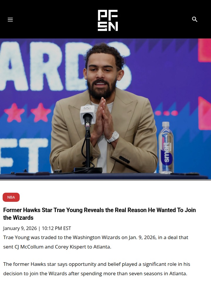 Patrick Gonzales+FollowTrae Young’s Fresh Start: Why He Chose D.C.Ice Trae is officially a Wizard! After weeks of rumors, the former Hawks star opened up about his move to Washington, saying it’s all about opportunity and trust. He feels D.C. is an underrated big market and wants to be the leader for a young core. While he’s still battling injuries, Trae’s ready for a new chapter—even if his minutes are limited this season. Do you think Young can revive his career in D.C.? #Sports #Basketball #TraeYoung00Share