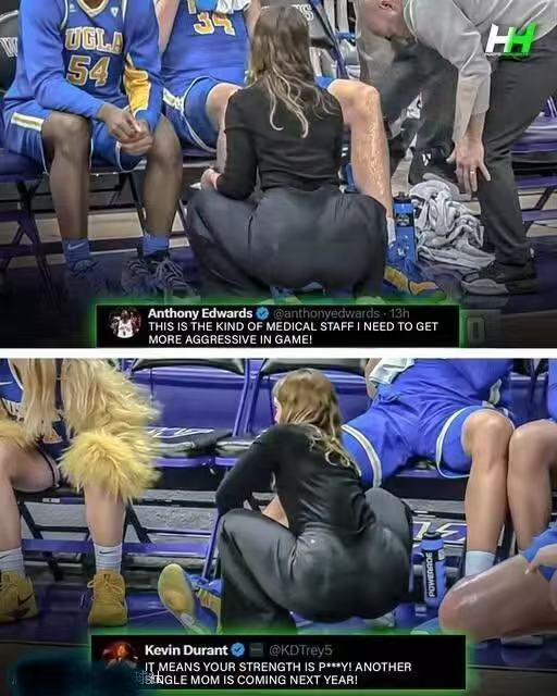 David Howard+FollowAnt says he needs that medical staffA courtside clip of UCLA trainer Alexa Blatt caught Anthony Edwards’ eye — he joked that’s the “medical staff” he needs to get more aggressive. Kevin Durant couldn’t resist trolling with a one-liner about it. Hoops comedy hour in December? #NBA #AnthonyEdwards #KevinDurant #UCLA #HoopsTwitter10911Share