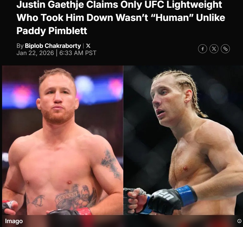 Angela Davis+FollowWill The Baddy Tap Out The Highlight?All eyes are on UFC 324 as 'The Baddy' Paddy Pimblett faces 'The Highlight' Justin Gaethje for the interim lightweight crown. The Bloody Elbow crew is unanimous: Pimblett’s BJJ skills could be Gaethje’s kryptonite, predicting a submission win for Paddy. But is Gaethje’s striking being overlooked? This rivalry is heating up—who do you think takes it? #Sports #Wrestling #UFC32430Share