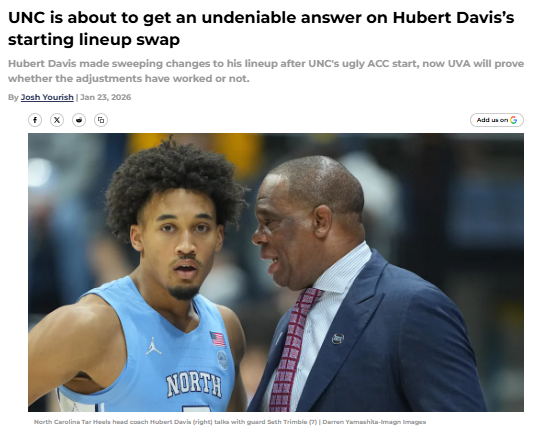 EchoingEagle+FollowUNC’s new lineup faces its biggest test yetNorth Carolina’s shakeup in the starting five finally paid off with a dominant win over Notre Dame, but now comes the real challenge: can this new group hold up against Virginia’s red-hot shooters? After struggling to defend the three-point line, Coach Hubert Davis swapped in more perimeter quickness and size. The Tar Heels’ ability to adapt will be on full display Saturday against a Cavaliers team built to exploit their biggest weakness. If the changes work, it could turn UNC’s season around. If not, Davis’s seat gets even hotter. What do you think—will this new lineup hold up? #Sports #UNC #TarHeels00Share