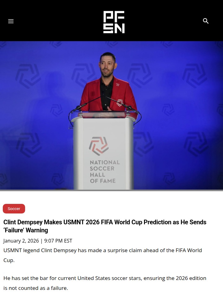 Jamie Mack+FollowDempsey Sets USMNT World Cup FloorDeuce just dropped a reality check for the Stars and Stripes! On Men in Blazers, Clint Dempsey said anything less than making it out of the group stage at the 2026 World Cup would be a failure for the USMNT. That’s a bold contrast to Coach Poch, who’s all about aiming for the trophy. With the U.S. hosting and a group featuring Paraguay and Australia, is Deuce being too cautious or just keeping it real? #Sports #Soccer #USMNT00Share