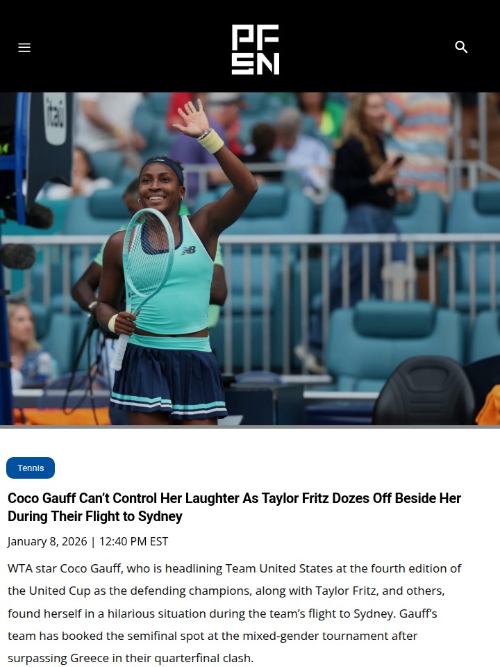 Stephen Herrera+FollowCoco Gauff & Fritz: United Cup LOLsTeam USA is flying high after Coco Gauff and Christian Harrison clinched a nail-biter mixed doubles win over Greece to book a United Cup semifinal spot. But off the court, the real highlight was Mackenzie McDonald catching Taylor Fritz—aka “Sleepy Fritz”—dozing off mid-flight, with Gauff cracking up beside him. The squad’s chemistry is on point, and with Gauff back in top form, all eyes are on their next big rivalry match. Who’s ready for more Team USA antics and on-court fireworks? #Sports #Tennis #UnitedCup10Share