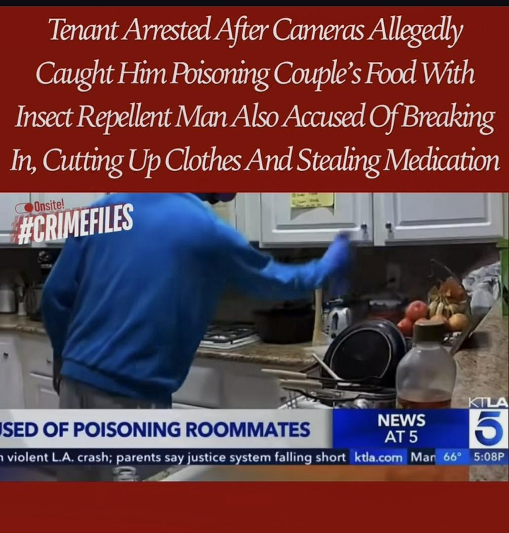 This one sounds like something out of a thriller. A tenant has reportedly been arrested after surveillance cameras allegedly captured him tampering with a couple’s food using insect repellent. Authorities also say he’s accused of breaking into the home, cutting up clothing, and stealing medication. According to reports, the disturbing behavior was discovered after the couple reviewed security footage and noticed unusual activity. Law enforcement later stepped in, and charges followed. If proven true, it raises serious concerns about safety, trust, and just how far personal disputes can escalate. Situations involving shared living spaces or close proximity can turn dangerous quickly — especially when boundaries are crossed. It’s also a reminder of the importance of security systems, documentation, and acting fast when something feels off. Trust your instincts. Protect your space. And never ignore red flags. #BreakingNews #TenantArrested #CrimeUpdate #HomeSafety #CommunityAlert #StaySafe #RealLifeNews #SurveillanceFootage #LegalTrouble #ViralStory #HardTruths