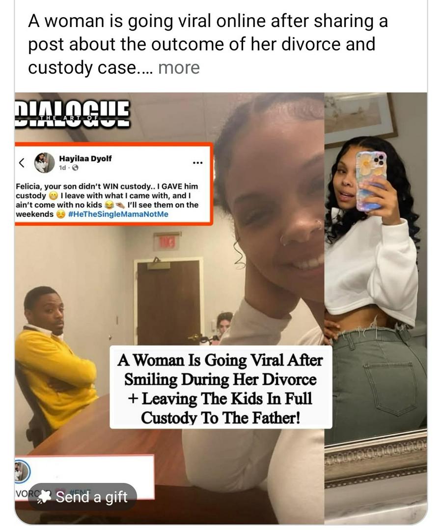 This divorce story has the internet talking. A woman is going viral after posting about the outcome of her divorce and custody case — revealing that the children’s father now has full custody. But what really caught people’s attention was her message online, where she claimed the father didn’t “win” custody… she chose to give it to him. Her post ended with a line that quickly spread across social media: “He the single mama, not me.” Some people online say she’s simply being honest about what she wants and refusing to live a life she doesn’t feel ready for. Others believe walking away from full-time parenting is something that shouldn’t be celebrated. The conversation has sparked a deeper debate about modern parenting, responsibility, and the expectations placed on mothers versus fathers. Would the reaction be the same if the roles were reversed? One thing is clear — the internet has a lot to say when family decisions become public. What do you think… honesty or controversy? #ViralStory #CustodyDebate #DivorceTalk #ModernParenting #SocialMediaBuzz #FamilyDiscussion #TrendingNow #RealLifeConversations #ParentingTalk #InternetDebate
