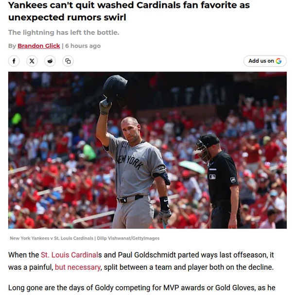 jillian59+FollowGoldy’s Bronx Comeback? Yankees-Cardinals SagaRumors are heating up about a possible Yankees reunion with Goldy for 2026. While Paul Goldschmidt isn’t the MVP force he was in St. Louis, his bat still punishes lefties and could be a sneaky asset off the bench. With Ben Rice likely taking over first base, is there room for one last ride with the Bronx Bombers? Cardinals fans, do you think anyone can fill Goldy’s shoes at first? Let’s hear your takes! #Sports #Baseball #Yankees00Share