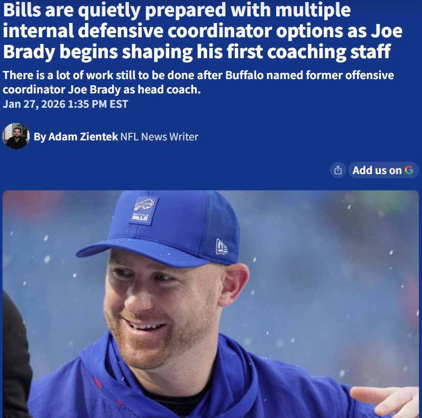 Aaron Taylor+FollowBuffalo Bills keep it in the family with Joe BradyJoe Brady is officially the new head coach for the Buffalo Bills, and it looks like the team is sticking with what they know. Instead of bringing in fresh faces, Buffalo is eyeing familiar names for their next defensive coordinator—think Bobby Babich, Ryan Nielsen, Al Holcomb, or Jahmile Addae. This move has the fanbase buzzing: is keeping things in-house the right call for a team that might need a shakeup? Or does continuity give the Bills their best shot at success? Let’s hear your take, Bills Mafia! #Sports #Football #BuffaloBills00Share