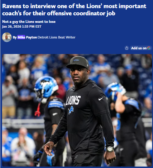 Jay Williams+FollowRavens Eye Lions’ Key Playmaker CoachBig news brewing in the NFL coaching carousel: the Ravens are set to interview Scottie Montgomery, the Lions’ assistant head coach and WRs guru, for their offensive coordinator gig. Montgomery’s fingerprints are all over the Lions’ breakout stars like Jahmyr Gibbs and Amon-Ra St. Brown. Losing him would sting for Detroit, but you can’t deny he’s earned a shot to run his own offense. Could this be the move that tips the AFC-NFC rivalry? #Sports #Football #RavensFlock00Share