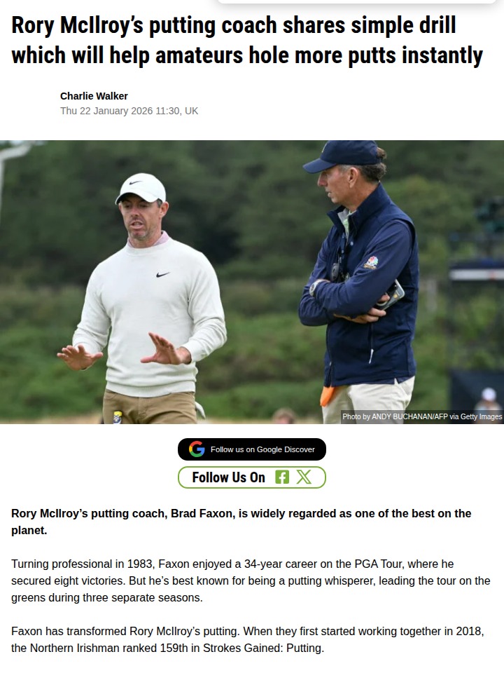 rmendoza+FollowFaxon's Drill: Rory’s Secret to Clutch PuttsAnyone else catch Brad Faxon breaking down his go-to putting drill on Rick Shiels’ channel? The guy who helped turn Rory “The Machine” McIlroy from 159th in putting to a legit threat on the greens says amateurs can benefit too. The drill? Six putts from six feet with six different clubs—yep, not just your putter. It’s all about touch, feel, and shaking off overthinking. Faxon even says clubface alignment is overrated. Anyone tried this yet? #Sports #Golf #GolfTips00Share