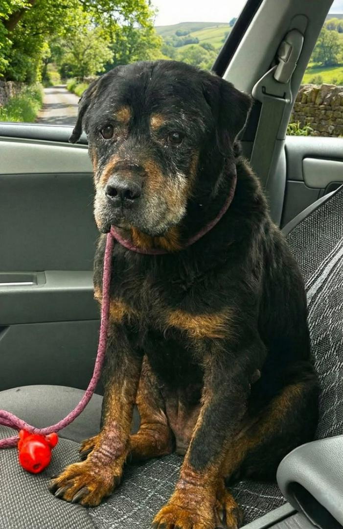 Today I brought an old treasure home from the shelter. And the moment he lay down in the car, nothing happened the way people would expect—no barking, no tail wagging. He just looked at me with eyes that seemed like they were holding tears. I still don’t know what hurt him more: the endless waiting… or the fear that no one would ever choose him again. For almost a year, this gentle senior Rottweiler sat at the shelter, usually quiet in a corner. He was “too old,” “too calm,” “not interesting enough.” Most people just walked past. But they didn’t see what I saw: a tired heart that was only hoping to finally be noticed. Maybe those tears were the weight of all those cold nights behind the bars. Maybe it was the uncertainty of leaving the only place he’d known for months. Or maybe it was something else entirely: a tiny spark of hope. Hope that the soft car seat now means rest. Hope that my hand on his back means safety. Hope that he isn’t invisible anymore. He’s almost nine—an age that scares a lot of people away. But today, that number didn’t define him. Today he didn’t leave the shelter as the “leftover dog.” He left as family. His name isn’t just a label on a kennel door anymore. It’s a promise: that his final years will be warm. Safe. And filled with a love strong enough to quiet old wounds. Whatever those tears were—pain, relief, or the very first hint of joy—one thing is certain: he’ll never have to doubt his worth again. Because he matters. And he is loved. #dogrescue #doglover #saveanimals #animallover #kindnessmatters
