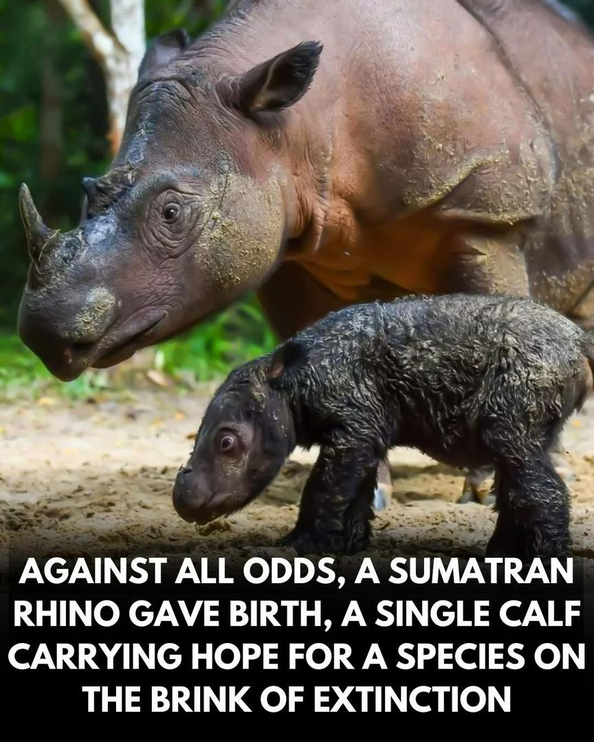 In a world where extinction headlines arrive far too often, this moment felt like a quiet miracle. A critically endangered Sumatran rhinoceros has given birth to her first calf—an event so rare it immediately captured the attention of conservationists worldwide. With fewer than 80 individuals believed to remain, every birth is more than good news. It is a lifeline. Sumatran rhinos are the smallest and most ancient of all living rhino species, survivors of a lineage that once spread across Asia. Covered in coarse hair and adapted to dense rainforest, they are elusive, solitary, and incredibly difficult to protect. Decades of habitat loss and historic poaching pushed them toward the edge faster than they could recover. That is what makes this birth extraordinary. Female Sumatran rhinos face serious reproductive challenges, especially after long periods without breeding. Many develop conditions that prevent pregnancy altogether. For a first-time mother to successfully carry and deliver a healthy calf is a major biological and conservation achievement. This calf represents more than a single new life. It reflects years of careful monitoring, veterinary expertise, protected habitat, and international cooperation. Managed breeding programs and safe sanctuaries remain among the last tools standing between survival and extinction. For conservation teams, this birth is proof that effort still matters—that protection can lead to recovery, even when the numbers feel impossibly small. For the species, the calf carries genetic diversity that could one day help stabilize a population teetering on the brink. This is not a guarantee of survival. The challenges ahead remain immense. But hope, like extinction, often begins with one moment. In this case, it began with new life. #wildlifeconservation #kindnessmatters 🌱🦏