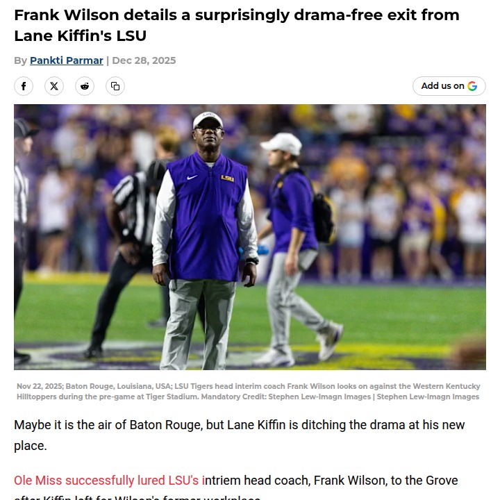 Chad Williams+FollowLSU fans, Lane Kiffin kept it classy this timeLane Kiffin, known for headline-making drama, just handled Frank Wilson’s exit from LSU with total professionalism—no Twitter jabs, no media shade, just mutual respect. Wilson, who’s now headed to Ole Miss, shared that Kiffin was supportive and even tried to find a way to keep him at LSU. For anyone who’s followed Kiffin’s wild coaching history, this is a real change of pace. Do you think this signals a new era for Kiffin, or is it just a rare calm before the next storm? Let’s hear your thoughts, LSU community! #Sports #Football #LSU00Share