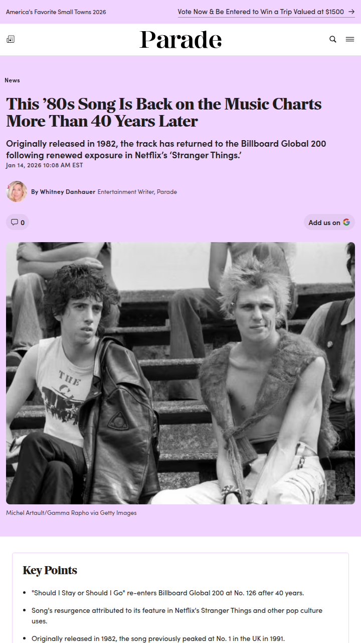 charles39+FollowStranger Things Revives The Clash’s Hit 🎸Did anyone else catch that “Should I Stay or Should I Go” by The Clash is back on the charts—over 40 years later? Fans are debating if Stranger Things deserves all the credit for this punk revival, or if it’s just a classic that never dies. Some think the show’s music picks are more influential than the artists themselves! Is Netflix the new kingmaker for old-school hits? #Entertainment #Music #TheClash10Share