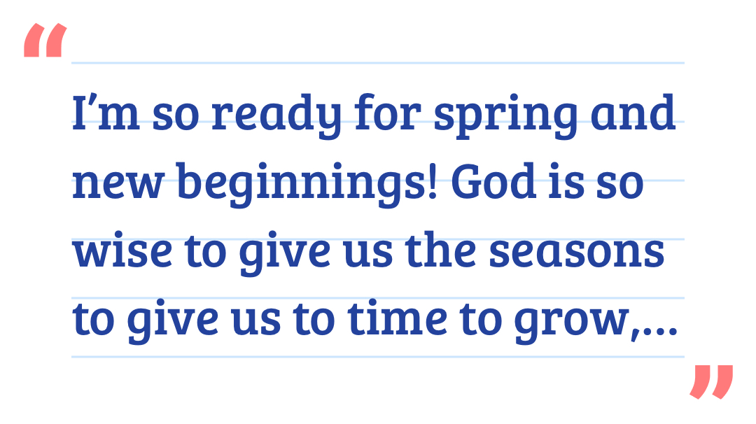 Amy Sharkey+FollowI’m so ready for spring and new beginnings! God is so wise to give us the seasons to give us to time to grow, then celebrate, reflect and recharge. #Song #of #Solomon_2_11 61Share