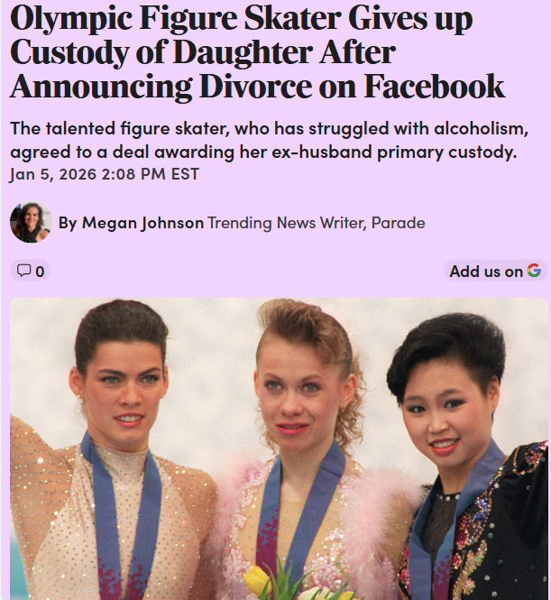 Bruce Johnson+FollowOksana Baiul’s life takes a sharp turnOksana Baiul, the Olympic gold medalist who once dazzled the world on ice, has made a deeply personal decision—she’s given up custody of her daughter as part of her divorce settlement. Her ex-husband is moving with their daughter from Louisiana to Las Vegas, and Baiul’s visits now depend on her daughter’s wishes. Baiul has spoken openly about her journey with sobriety and is taking steps like anger management and regular testing to stay on track. It’s a reminder that even icons face tough choices and fresh starts. How do you think public figures handle personal struggles in the spotlight? #Sports #OksanaBaiul #Parenting20Share