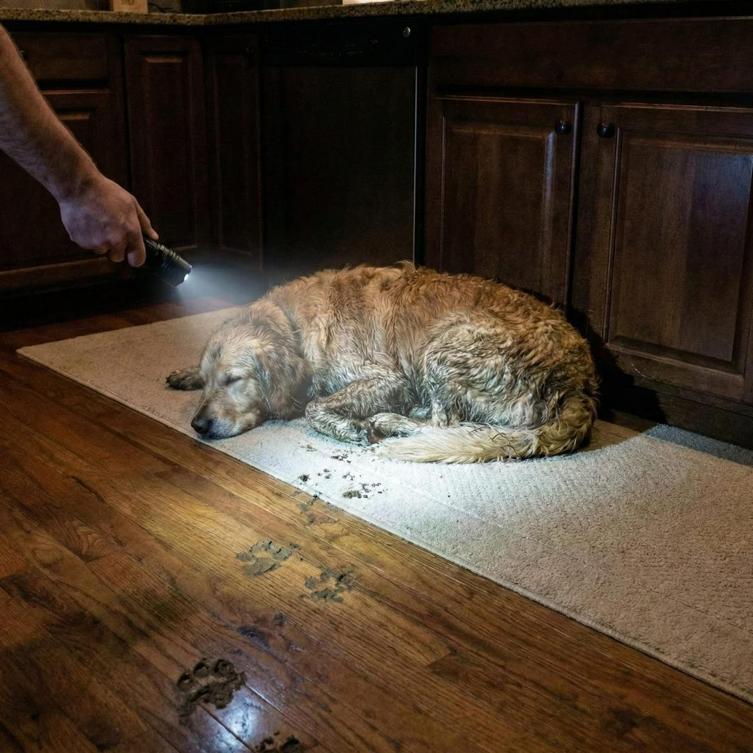 He walked 12 miles to get back to this house. He didn’t know his owner had died. He just knew this was home. At 3:14 AM, my wife shook me awake. “There’s someone downstairs. I heard footsteps.” I grabbed a baseball bat and told her to lock the door. My heart pounded as I crept down the stairs. Heavy breathing. The click of nails on tile. I kicked the kitchen door open. “GET OUT!” I flipped on the light. A mud-covered Golden Retriever lifted his head. He was shaking, ribs showing, eyes sunken with exhaustion. He thumped his tail once and rested his head back down. No growl. No panic. Just a long sigh of relief. I lowered the bat. The back storm door latch was broken. He’d nudged it open. His collar had no tags, only a faded ring where a name once was. I couldn’t put him back in the rain. I gave him water and turkey. He swallowed it whole and fell asleep instantly. The next morning, the vet scanned for a chip. She made a call. Her face changed. “The number belongs to Mrs. Higgins,” she said quietly. “She lived in your house for forty years. She passed away three months ago. Her son took the dog two towns over.” I looked at him. He hadn’t run away. He walked 12 miles. Crossed a highway. Through a storm. He wasn’t escaping. He was coming home. He didn’t know she was gone. He just knew this kitchen meant love. I called the son. When he arrived and tried to load the dog into his car, the dog refused. He planted himself in my driveway and stared at my front door. “He never settled,” the son admitted, eyes wet. “He paced every night.” We made a deal in that driveway. The “intruder” has a name. Rusty. He sleeps in the kitchen every night. He isn’t really my dog. I’m just the new guy living in his house. And honestly? I think he chose well. 🐾 #doglover #storytelling #saveanimals #loyalty