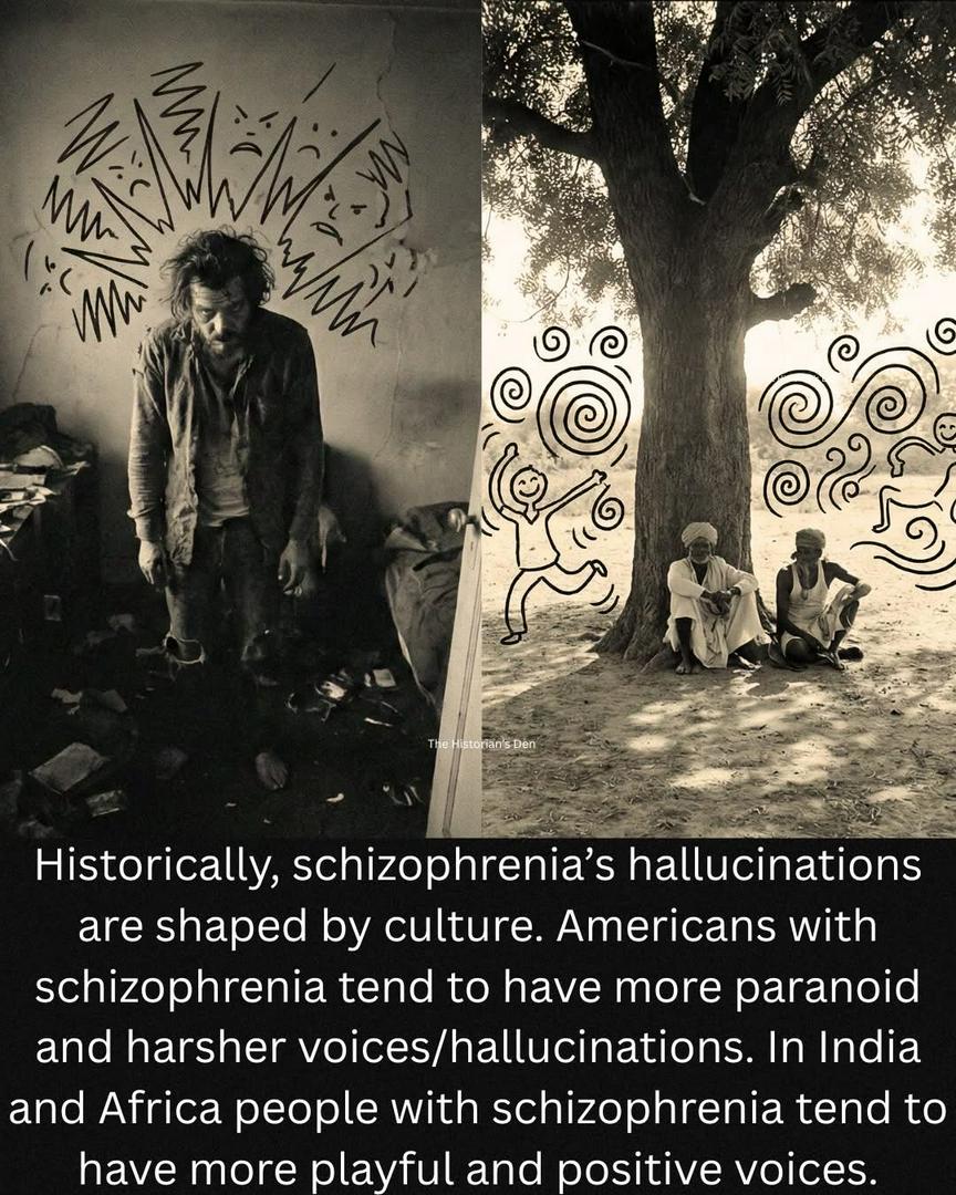 Schizophrenia is often thought of as a universal condition with consistent symptoms, but studies show that culture plays a powerful role in shaping how people experience it, especially auditory hallucinations. Anthropologist Tanya Luhrmann and her team interviewed individuals with schizophrenia in the U.S., India, and Ghana, and found striking differences in the tone and content of the voices they heard. In the U.S., voices were often harsh, threatening, and commanding, frequently invoking violence or paranoia. In contrast, patients in India and Ghana described voices that were more playful, benign, or even helpful, sometimes offering guidance or companionship.