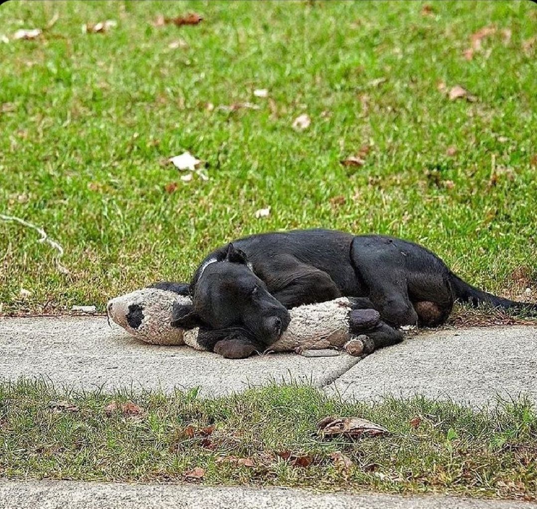 He was found at the park, lying in the park just as he used to this time with the babv's stuffed bunny under his head. The couplestuffed bunny under his head. The couple realized what he had done. He thought his best friend might be waiting for him there so he carried the toy, hoping it would bring the baby back.