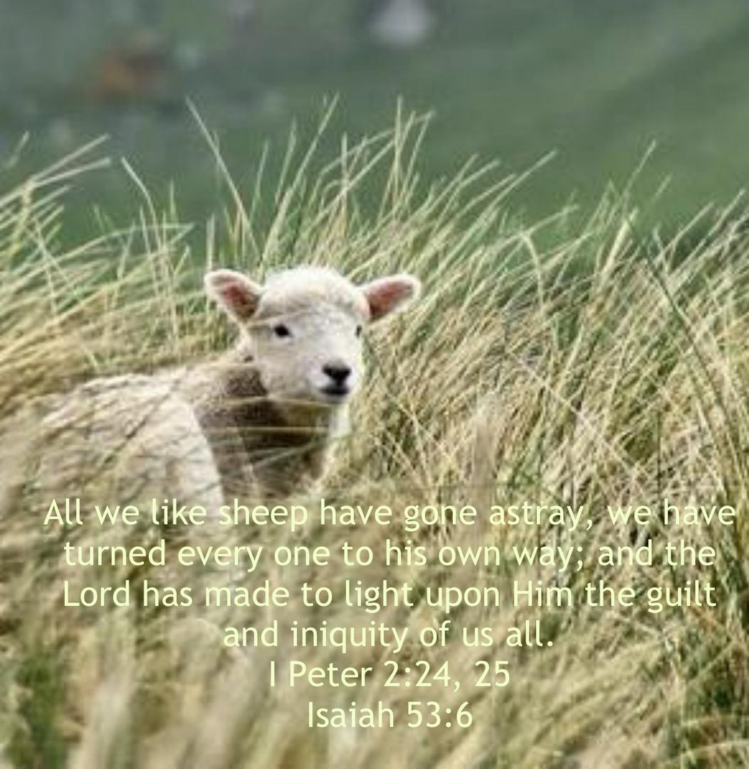 Isaiah 53:6 The sheep and Jesus… When it comes down to the heart of the matter, here it is. What we don’t immediately see is the driving force, the love that draws and holds everything together. The love, the lost sheep, and the atoning sacrifice. We see humility, and patience at work, products of the love God has for His creation. Isaiah writes God‘s words…we’re all like sheep who’ve gone astray. Some have no idea they’re even lost, others recognize their condition, their frailties and their sin. They cry out for ‘help’ to the God Who Hears. They recognize the nail scarred hands and the love that flows from the One Who redeems them. They feel the strong embrace of Him Who carries them back… What’s our story? Did we know we were lost, how desperate we were? Do the words ‘ there is nowhere you can go that I can’t find you…’ apply to us in our moment? When the enemy tells us ‘you’ve really gone too far this time, God‘s Grace isn’t enough…’, does God’s Truth echo in our heart and mind ‘…there’s no height nor depth nor anything else in all creation that will be able to separate you from Me… you are Mine!’ and do we remember, even though He despised the shame of the cross, He accepted it for the joy in obtaining the prize for us? He became the selfless sacrifice to break down the barrier between His Law of Righteousness and His free grace. It’s all connected, His love, His creation, His atoning sacrifice…His plan, His purpose…His Will. Lord, have we told You lately how much we love You? How grateful we are that You didn’t just leave us in our mess, but unconditionally loved us and brought us back ‘home’. Lord, thank You for being our Keeper, for posting guards at the gates and keeping us safe.