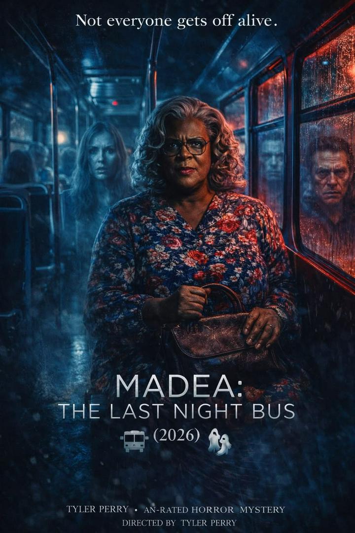 🎬 MADEA: THE LAST NIGHT BUS (2026) Starring: Tyler Perry, Angela Bassett, Viola Davis On a storm-soaked winter night, an aging city bus runs its final route through forgotten neighborhoods and empty streets. Madea boards the bus with nothing but her purse, sharp tongue, and a weary heart, expecting a quiet ride home. Instead, the bus becomes a moving nightmare trapped between the living and the dead. As rain lashes against the windows and the city fades into darkness, strange passengers begin to appear—silent figures whose reflections don’t match their faces, whose whispers echo with unfinished regrets. When the bus breaks down near an abandoned industrial district, Madea realizes time itself is fractured. Each stop reveals fragments of tragic pasts tied to the passengers, souls bound to the route by unresolved sins and buried truths. As the night deepens, ghostly forces manipulate the bus, forcing it to loop endlessly while tension escalates inside. Madea’s humor becomes a shield against fear, but even she senses that something far more sinister is guiding the journey. A former social worker with a haunted past and a hardened driver hiding a dark secret become unlikely allies as Madea uncovers the truth: the bus is a final judgment, and not everyone on board is meant to survive the night. To break the curse, Madea must confront her own memories of loss, guilt, and survival, challenging the spirits that feed on fear and silence. Balancing supernatural horror with sharp-edged comedy, the film blends suspense, emotional depth, and Madea’s fearless defiance. As dawn approaches, the final stop promises either freedom or eternal captivity. In a world where death listens closely, Madea proves that courage, truth, and a loud mouth might be the only weapons strong enough to stop what lurks in the dark. #HorrorComedy #SupernaturalThriller #MadeaReturns