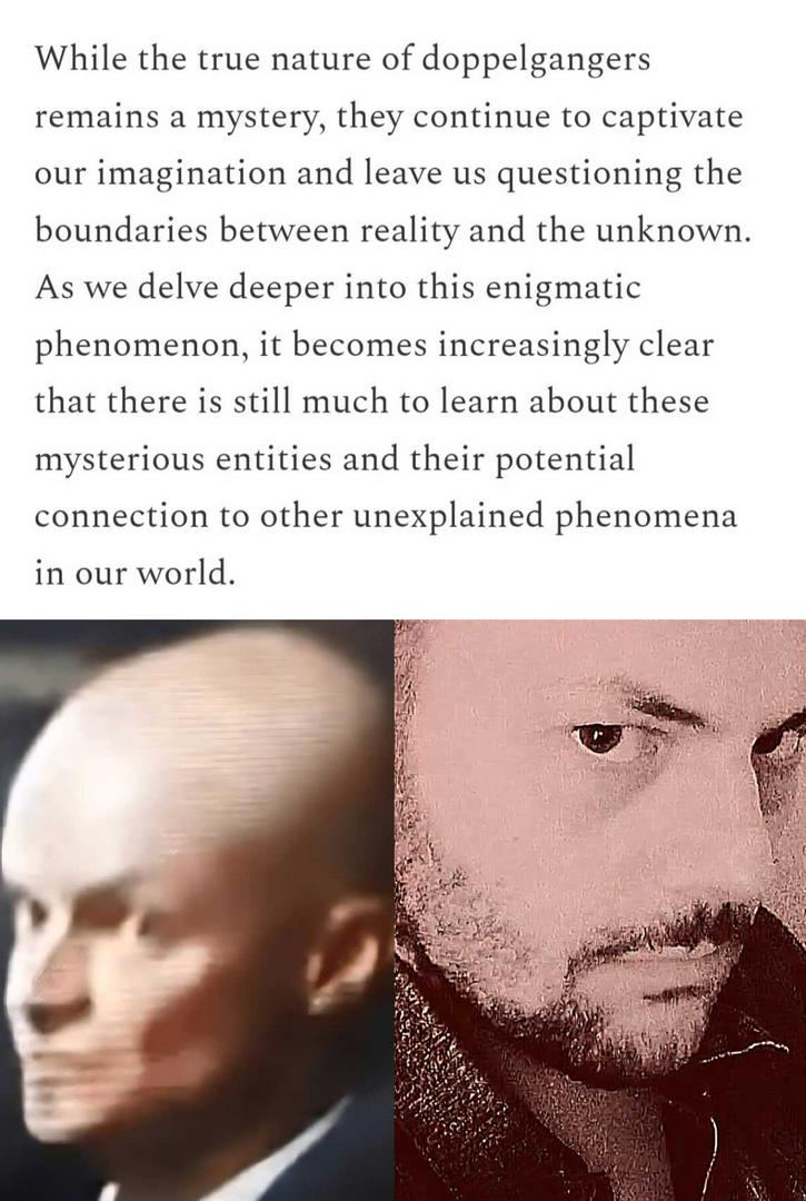 A doppelgänger is a German term meaning "double-walker," referring to a ghostly double of a living person, often seen as an omen of bad luck or death, but today also commonly used for any unrelated person who looks strikingly like you (a "twin stranger"). These uncanny look-alikes can be benevolent, sinister, or simply a fascinating phenomenon explored in folklore, literature (like Naomi Klein's book Doppelganger), and pop culture, representing themes of identity, duality, and distorted reality. In The First Image, My "Doppelganger" Is The Person On The Left - He Isn't Human - He Is Reptilian - Pay Close Attention To His Eyes. In The Second Image, My "Doppelganger" Is Person On The Right - This Person Is Also Not Human - He Is Reptilian. In The 3rd Image, My "Doppelganger" Is The Person On The Left - This Person Is Human. I Was Born September 8, 1972 - Adopted A Short Time Later When I Was Still A Baby. I Am Wondering If The Person In The Blue Shirt & Cap Is Me From Another Timeline (❓️), A Long Lost Sibling. I Am A Starseed. That Is Why All This Is Happening. Donnie Brooke, 4721 Bantry Rd., Grovetown, Ga. 30813, USA 🇺🇸. 706-840-8639. donnie.brooke@mail.com. *Pass This Along.