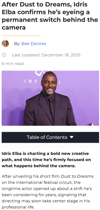 Brittany Rios+FollowIdris Elba’s Directing Pivot Shocks Fans 🎬Idris Elba just dropped a bombshell at the Red Sea Film Festival—he’s planning to leave acting behind and go full-time into directing! After premiering his short film Dust to Dreams, Elba said he’s been eyeing this move for years. Fans are split: some are hyped for his creative evolution, others can’t imagine him off-screen. Is this the end of Stringer Bell vibes forever? #Entertainment #Movies #IdrisElba00Share