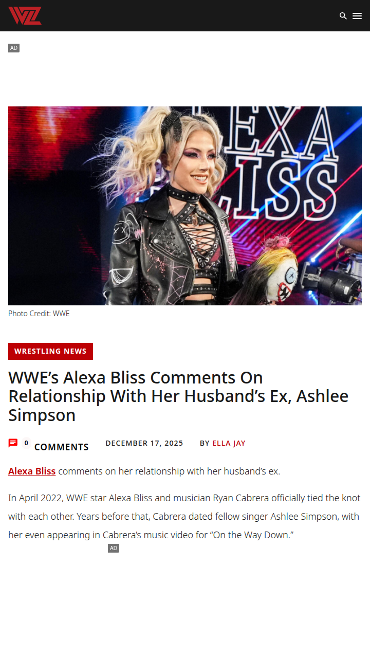 Kayla Mcconnell+FollowAlexa Bliss & Ashlee Simpson: No Drama Here!WWE’s own Five Feet of Fury, Alexa Bliss, just gave fans a peek behind the curtain about her relationship with her husband Ryan Cabrera’s ex, Ashlee Simpson. Turns out, there’s zero bad blood—Bliss says she’s actually a fan of Simpson! Both families are on great terms, even celebrating milestones together. It’s rare to see this kind of positivity in the spotlight, especially with so much history. Thoughts on this mature approach from Bliss and crew? #Sports #Wrestling #WWE00Share