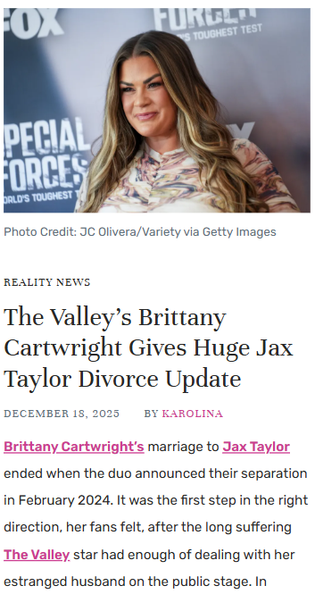 Chad Kemp+FollowBrittany Cartwright shares real talk on her divorceBrittany Cartwright just got real about her ongoing divorce from Jax Taylor, and it’s clear the process has been anything but smooth. After months of delays—thanks in part to Jax’s early attempts to handle things solo—Brittany now hopes everything will be finalized by the end of the year. She opened up on her podcast about the emotional rollercoaster, sharing that she’s still single and actually loving it. It’s refreshing to see her embrace this new chapter, but it makes you wonder: will the paperwork finally catch up with her new outlook? #Entertainment #Celebrity #BrittanyCartwright00Share