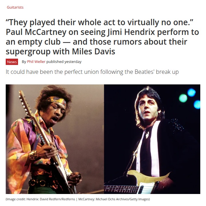 Casey Sutton+FollowPaul & Jimi: The Supergroup That Never Was 🎸Wild to think Paul McCartney could’ve jammed with Jimi Hendrix and Miles Davis, right? Fans have always speculated about this legendary supergroup, but Paul himself says he never got the invite. Some say the timing was too perfect—same day as the “Paul is dead” rumor! Imagine if rock’s two biggest lefties actually teamed up. Would the Beatles breakup have hit as hard if this had happened? #Entertainment #Music #PaulMcCartney10Share
