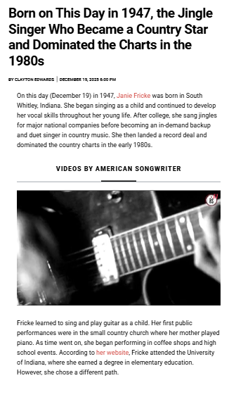 Savannah Smith+FollowJanie Fricke’s Secret Feud? 🎤Janie Fricke may have dominated the country charts in the '80s, but some fans still debate if her rise from jingle singer to superstar ruffled feathers among Nashville’s old guard. Was her quick climb thanks to talent, or did her commercial background give her an unfair edge? The fandom is split, with some saying she changed the game and others claiming she just played it differently. Thoughts? #Entertainment #JanieFricke #CountryMusic00Share
