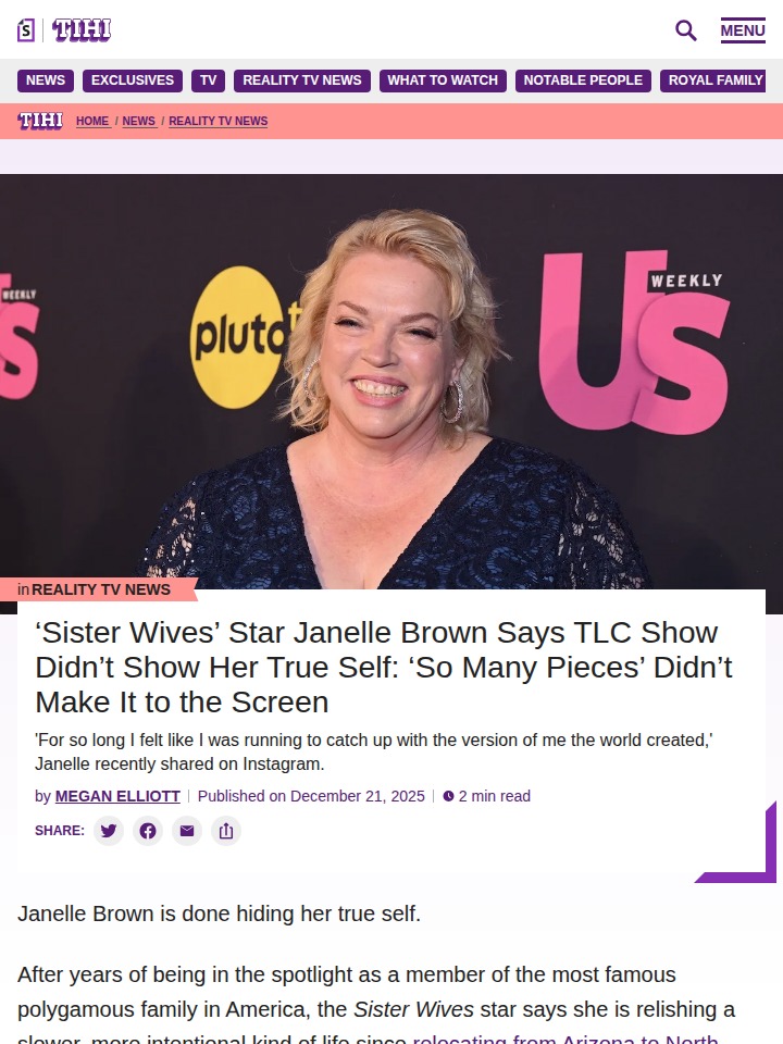 Ryan Massey+FollowJanelle Brown Unfiltered: What TLC Hid 👀Janelle just spilled major tea on Instagram about how Sister Wives never showed her real self. She says so many parts of her life and personality were left out, and now she’s finally sharing her truth post-Kody. Fans are debating: Was TLC protecting the Browns’ image, or just editing for drama? Janelle’s new chapter has everyone talking! #Entertainment #TVSeries #SisterWives00Share