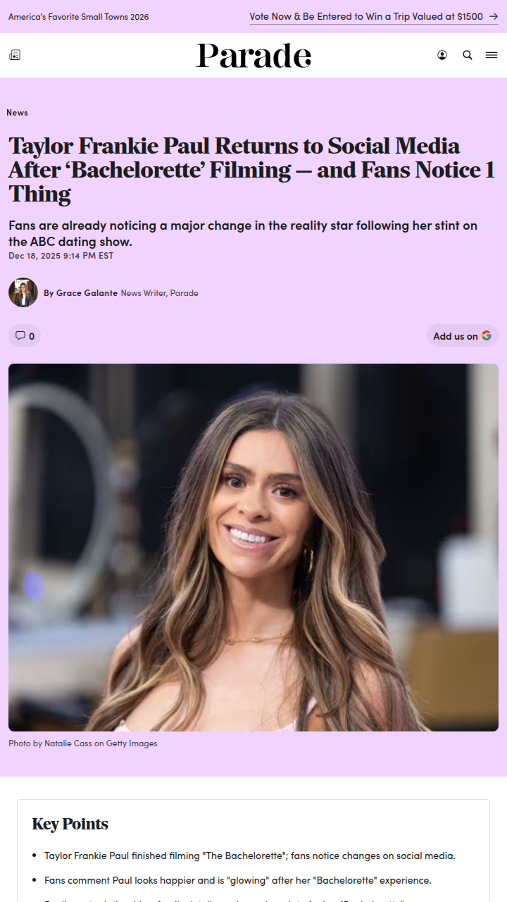 Victoria Garcia+FollowTaylor Frankie Paul’s Post-Bachelorette Glow ✨Taylor Frankie Paul just popped back up on social media after filming The Bachelorette, and fans are convinced she’s never looked happier. The real tea? Her TikTok with sister Aspen May has everyone speculating she found true love on the show. The comments are full of people noticing her “glow” and debating if she’s finally moved on from her messy past with Dakota Mortensen. Did the Bachelorette magic actually work this time? #Entertainment #TVSeries #TaylorFrankiePaul00Share