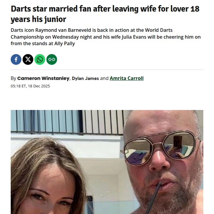 James Hall+FollowBarney’s Wild Love Life Shocks Darts Fans 🎯Raymond van Barneveld’s love life is honestly wilder than his darts career lately! After splitting from his longtime wife Silvia (who even testified in court after their home was burgled!), he left her for Julia, a fan 18 years younger. Now Julia’s not just his wife but also his assistant manager. Some fans say it’s true love, others think it’s all too messy. Is Barney’s comeback about the game, or just the drama? #Entertainment #Celebrity #RaymondVanBarneveld00Share