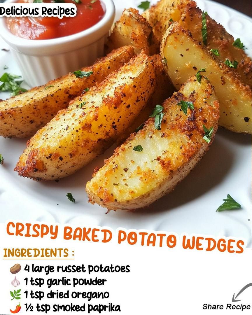 Latoria M⭐️+FollowCRISPY BAKED POTATO WEDGESINGREDIENTS : 4 large russet potatoes 1 tsp garlic powder 1 tsp dried oregano ½ tsp smoked paprika2619Share