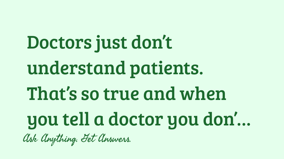 Doctors just don’t understand patients. That’s so true and when you tell a doctor you don’t want a temporary solution to a permanent problem they get angry and automatically assume you’re a surgery junkie. It’s crazy, I can justify all of my health issues, from terminal cancer all the way down to a torn rotator cuff and that’s the least of my problems 🤦‍♀️. Yet the doctors are getting mad at me because I’m not on narcotics and don’t want to be because I don’t want to be drugged up and pushed aside. I take too many pills already, narcotics are going to do what for bone pain from cancer? I just wish I could give the doctors a brief exposure to what I feel constantly so they would understand. Maybe that would change their perspective and their treatment of patients. Could you imagine if every patient went in and the doctor had to feel everything we felt, even for a brief moment. Oh that would be a game changer😲!