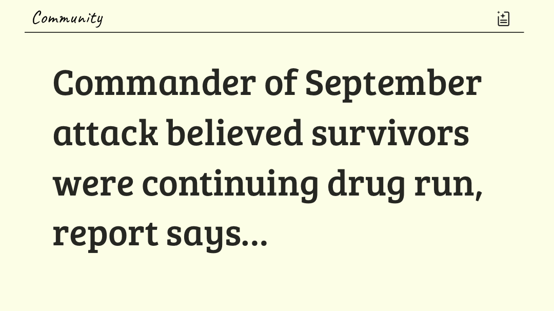 The U.S. military commander involved in a deadly Sept. 2 strike on a suspected drug vessel in the Caribbean is expected to tell lawmakers Thursday that a follow-up attack was ordered against two survivors because he believed they were attempting to continue their drug run, a report said.