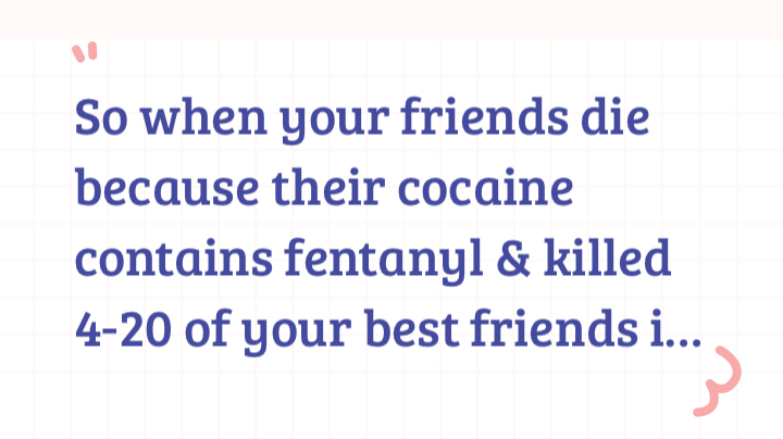 So when your friends die because their cocaine contains fentanyl & killed 4-20 of your best friends in a year; then you complain about the attacks. Unless it is 90-99 % pure, it does not be on the street or distributed! Cocaine, Herion, & PCP must be pure of the same strength so you pay for what you are supposed to; get the true formula & have it last for days or weeks when you are in the mode to do it. Not get garbage to let you down & you spend all or your$ to never get what you hit 2 years ago! I can say that the drug dealers made me quit 30 years ago & I am glad I said that as I have stuck to staying away because the 89’s you got real & there is no real in the US now including Rx antibiotics that give you uncontrollable diarrhea & caused me to quit! Best decision in my life! Changed my crazy friends & my life changed for the better! Addiction is an issue but if you can’t get the strength that you remembered, it causes issues. I just wish they offered low income programs