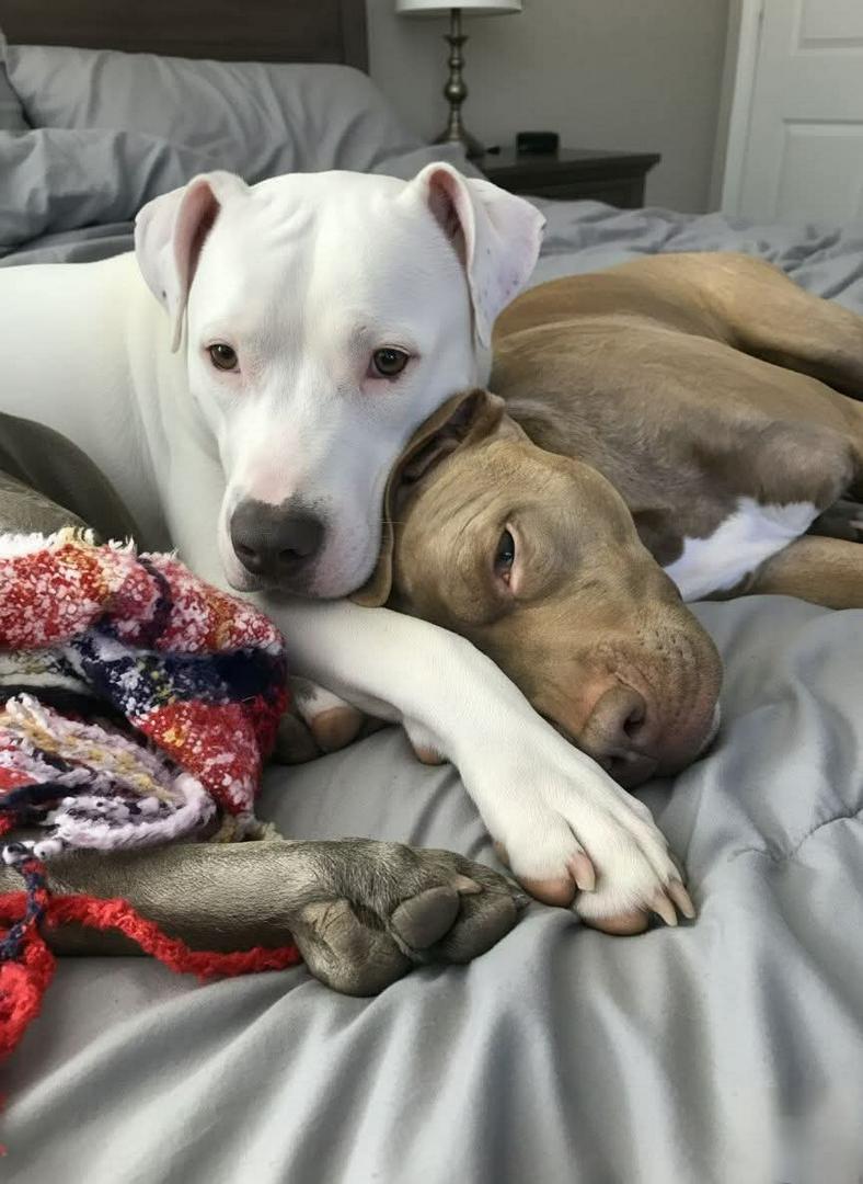 “I’m so sorry to call you this late.” It was 3:47 a.m. when my phone rang, the rescue coordinator’s voice was tight with worry. Earlier that day, I’d brought home Mochi—a cream-colored pittie with velvet ears and the gentlest eyes. A simple foster, I’d told myself. Two weeks. Maybe three. “Her sister isn’t coping,” the coordinator said softly. “She hasn’t stopped screaming since Mochi left. She broke a tooth trying to get out of the kennel.” I looked down at Mochi. She wasn’t asleep like I thought. She was lying still, eyes fixed on the door, as if she knew something was missing. By 4 a.m., I was driving back to the shelter in my pajamas. Matcha was heartbreak in motion—voice gone hoarse, paws raw, body trembling. But the second she caught Mochi’s scent, everything stopped. She pressed herself against the crate, breathing slowly for the first time all night. When the door opened and the sisters touched noses, the panic melted away. Two halves finally whole again. “Just a few days together,” they said. “Until we figure something out.” That was eight months ago. Now they sleep curled into one soft heap. They share bowls, toys, and every moment. Where one goes, the other follows—always, without question. I thought it was a temporary stop on their journey. Turns out, I was home Credit - we are rescuers