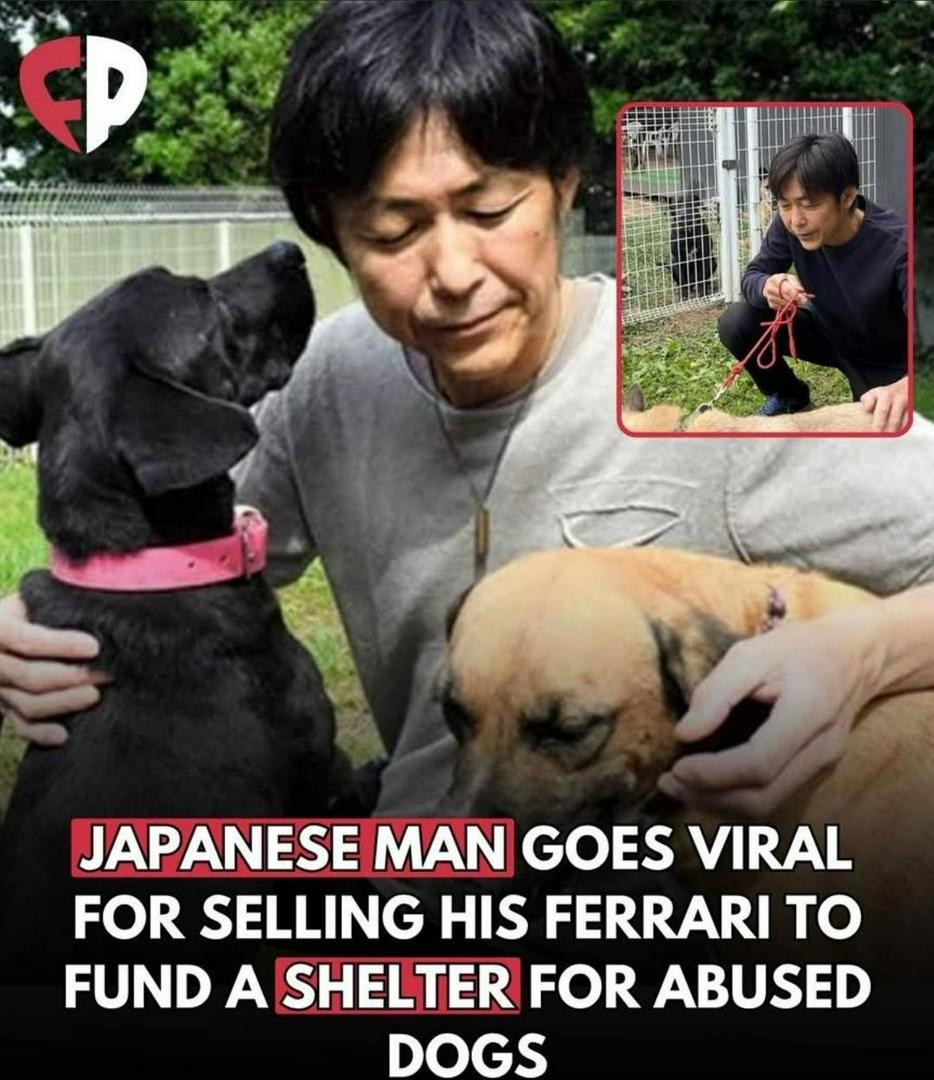 A Japanese man nas gone viral atter selling his beloved Ferrari to fund a shelter for abused and abandoned dogs. For years he dreamed of owning that car, saving anc working until he finally made it happen. But when he started volunteering at a loca rescue and saw the suffering so many dogs endured, something in him shifted. He realized the Ferrari brought him iov, but saving lives brought him purpose. So he isted the car for sale, took the money, and built a shelter equipped with warm beds, medical care, and safe outdoor space for doas that had nowhere else to go Today, the shelter is thriving. Dozens of dogs have already been rescued, treated and adopted thanks to his sacrifice. Locals call him a hero, but he says he simply chose love over luxury Some people collect cars. Others collect moments that change the world for the better. #RescueHeroes #LoveOverLuxury