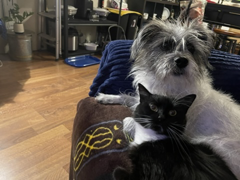 Rascal, the black‑and‑white male, was high‑energy, curious, and goofy.