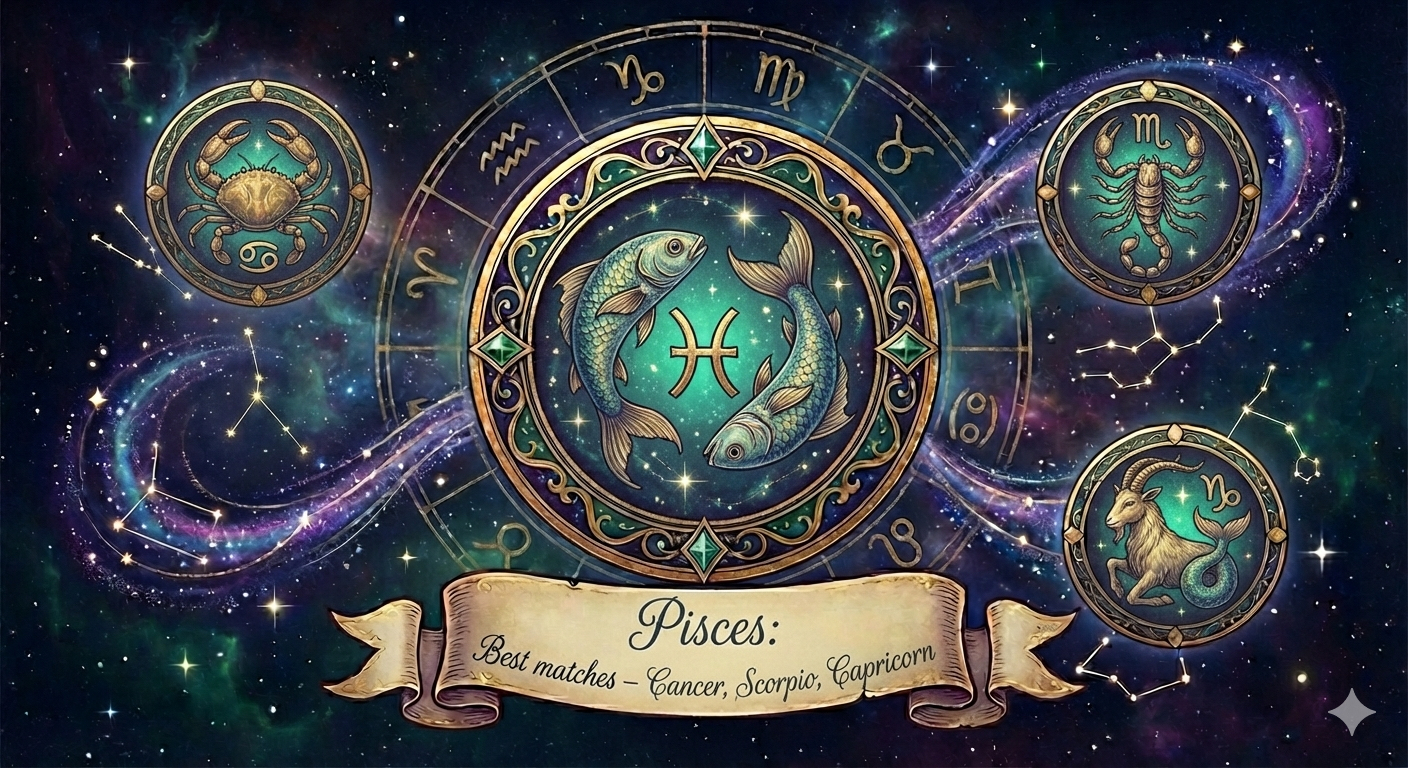 • Pisces: Best matches – Cancer, Scorpio, Capricorn