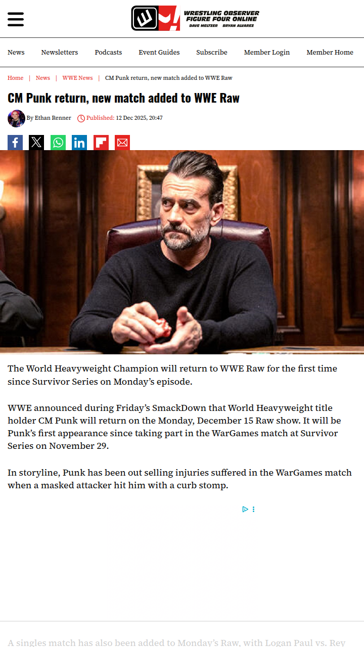 dbrown+FollowCM Punk Returns: Raw Gets Wild!Best in the World alert! CM Punk is back on Raw for the first time since that brutal WarGames beatdown. The champβs been out selling that curb stomp from the masked attackerβanyone else think weβll finally get answers? Plus, Logan Paul vs. Rey Mysterio is set, and The New Day clash with The Usos. Monday night is stacked! Which match are you most hyped for? #Sports #Wrestling #CMPunk10Share