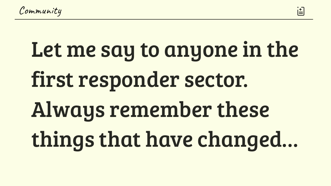 Let me say to anyone in the first responder sector. Always remember these things that have changed us to give it all constantly have made you someone rare in this society. People will never understand the level of pain confusion and what it takes to mentally cope with all those things. Most people may only be exposed to something that stays with them for the rest of their lives. Just one. While what we do we are exposed to thousands of those moments that we have to cope with yearly. Those events are beyond what any average person could ever imagine. Things that would break normal people with in just a few times of trying to understand what you just seen or just survived. Remember we all in this first responder group know that you individually are a very unique human being. We don’t need anyone to tell us what we are worth. We don’t need to be told we have just made an offense in someone lives or their families lives. We already know what we did and how it was done. No need to be told.