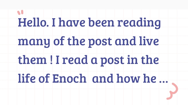 Rudy Rodriguez+FollowHello. I have been reading many of the post and live them ! I read a post in the life of Enoch and how he chose fauth over fear and a few other points and I can not see it anymore. If someone knows what I am talking about can you repost it?10Share